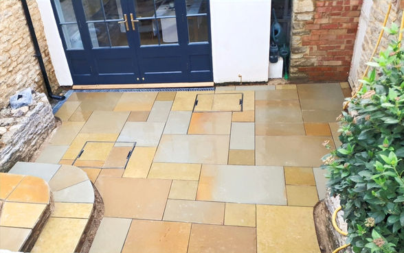 Garden revamp where we replaced the patio, rebuilt steps and relaid lawn.